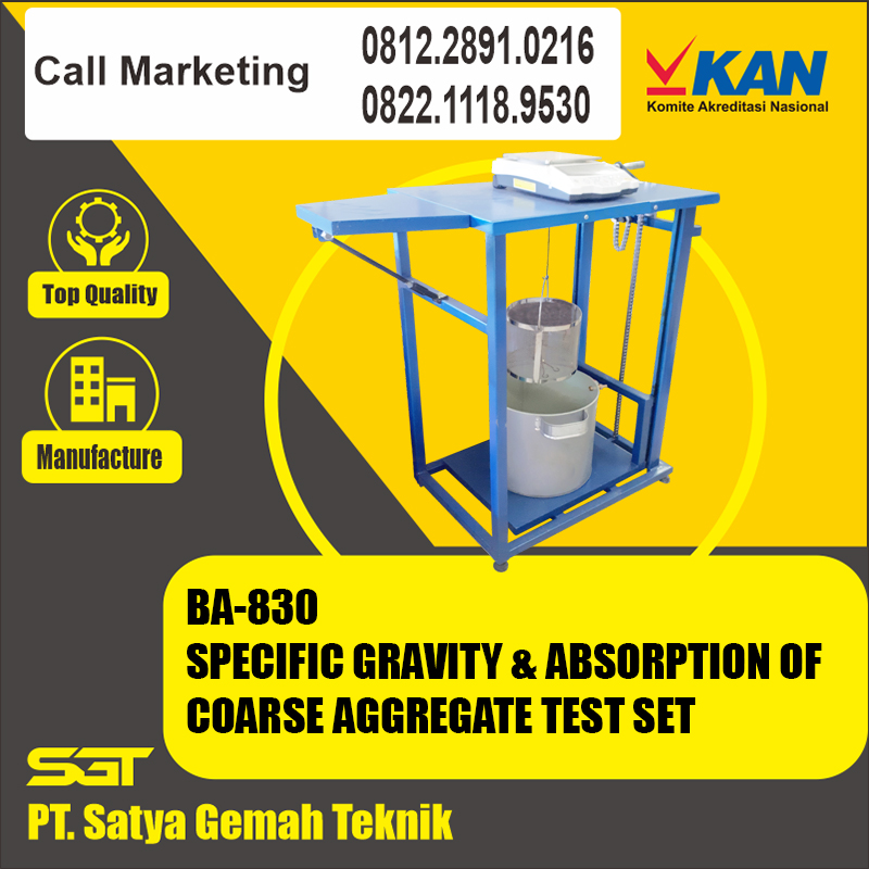 Satya Gemah Teknik jual specific gravity and absorption of coarse aggregate hub. 081228910216 & 082211189530 Kami menyediakan produk yang berkualitas dan bergaransi, selain menjual kami juga melayani jasa kalibrasi dan service untuk Alat Teknik Sipil.